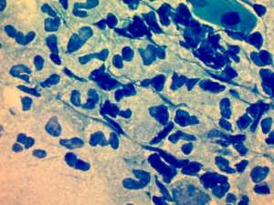 aerob vaginitis (PMN leukocyták), metilénkék festés, Zeiss Axiolab A1 mikroszkóp – dr Ujházy András felvétele