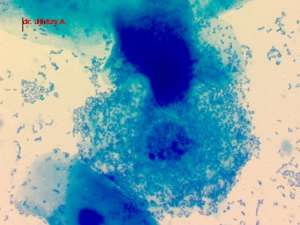 bakteriális vaginosis, metilénkék festés, Zeiss Axiolab A1 mikroszkóp – dr Ujházy András felvétele